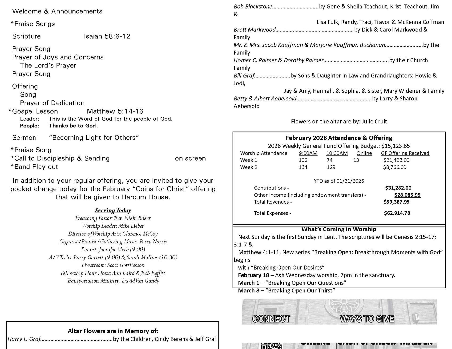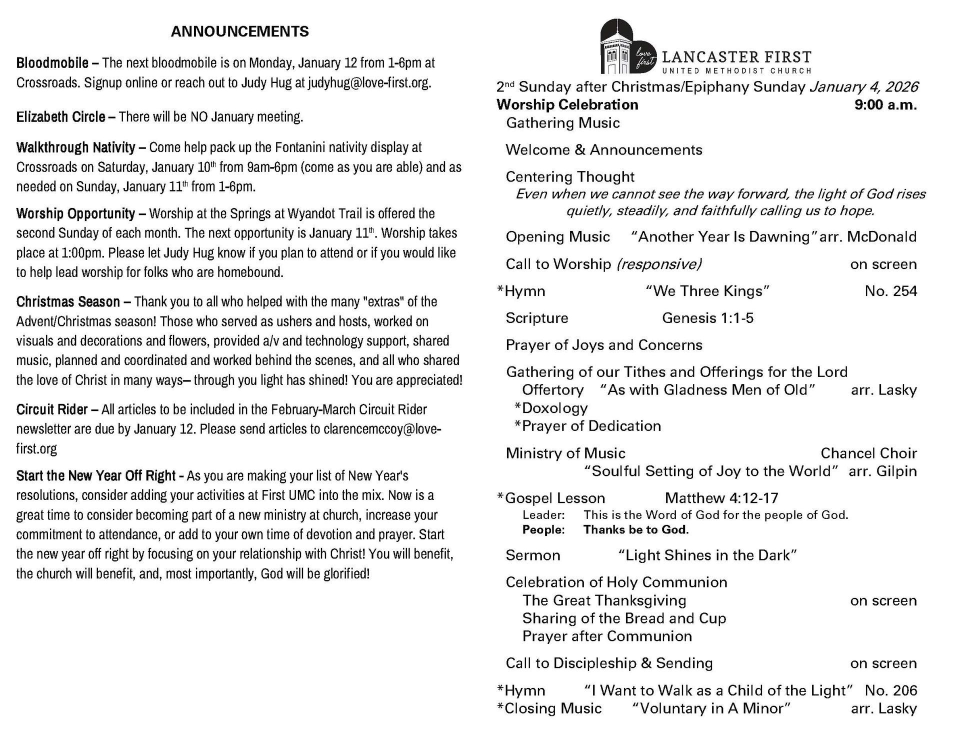 Help us save paper by accessing the bulletin each week here!