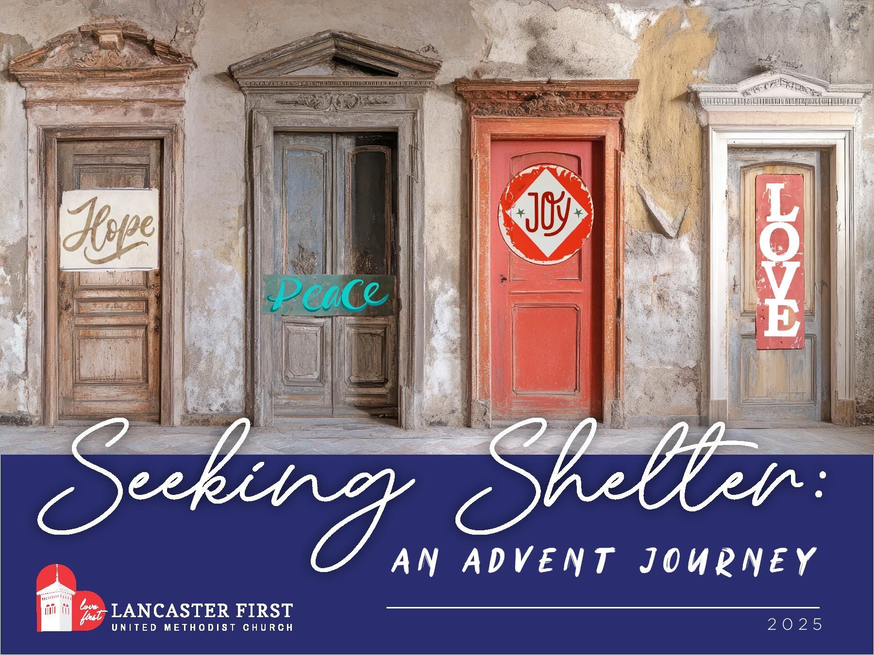 This Advent, we walk with Mary and Joseph as they search for a place where love can be born. We will knock on doors of hope, peace, joy, and love — until, on Christmas Eve, the stable door is opened and the Savior is welcomed. This Advent, may we be ready not only to remember the story of long ago, but to live it again-- preparing our hearts, opening our lives, and making room for Christ who is Emmanuel, God with us.